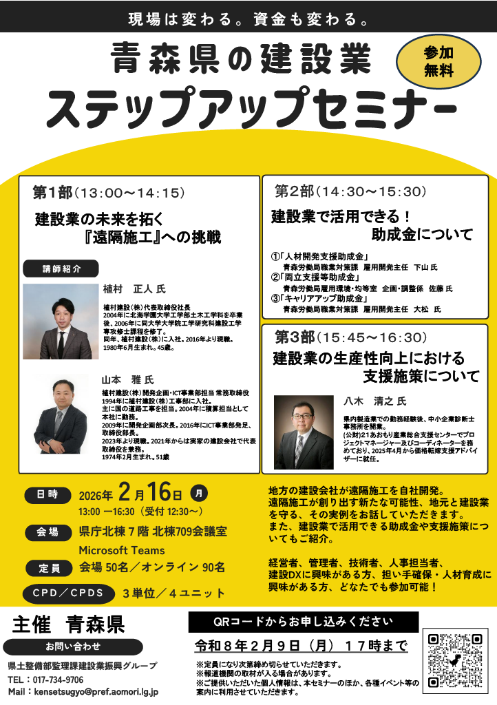 | 令和8.1.26 | 青森県の「建設業ステップアップセミナー」開催のお知らせ |